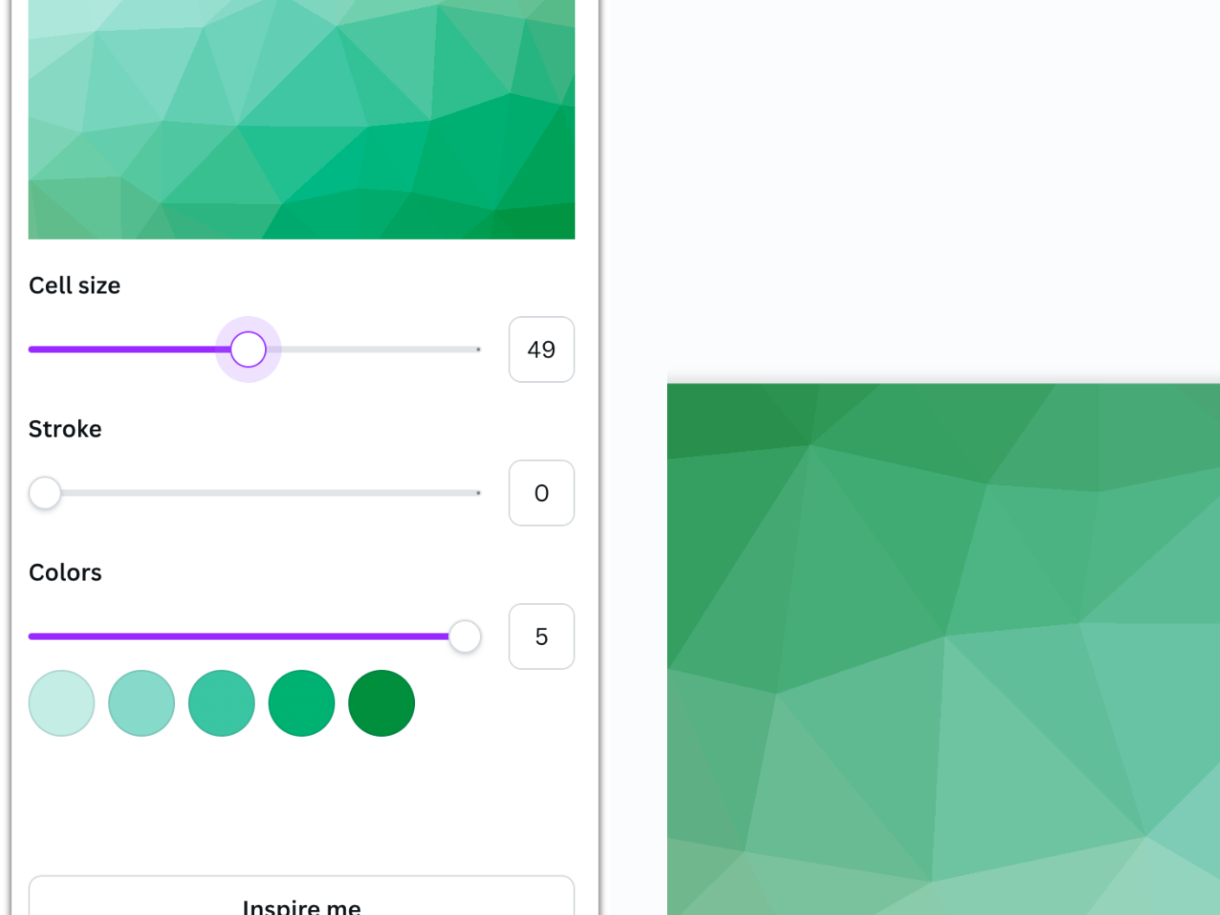 Quickly create lowpoly style patterns by setting cell size, stroke width, and colors.