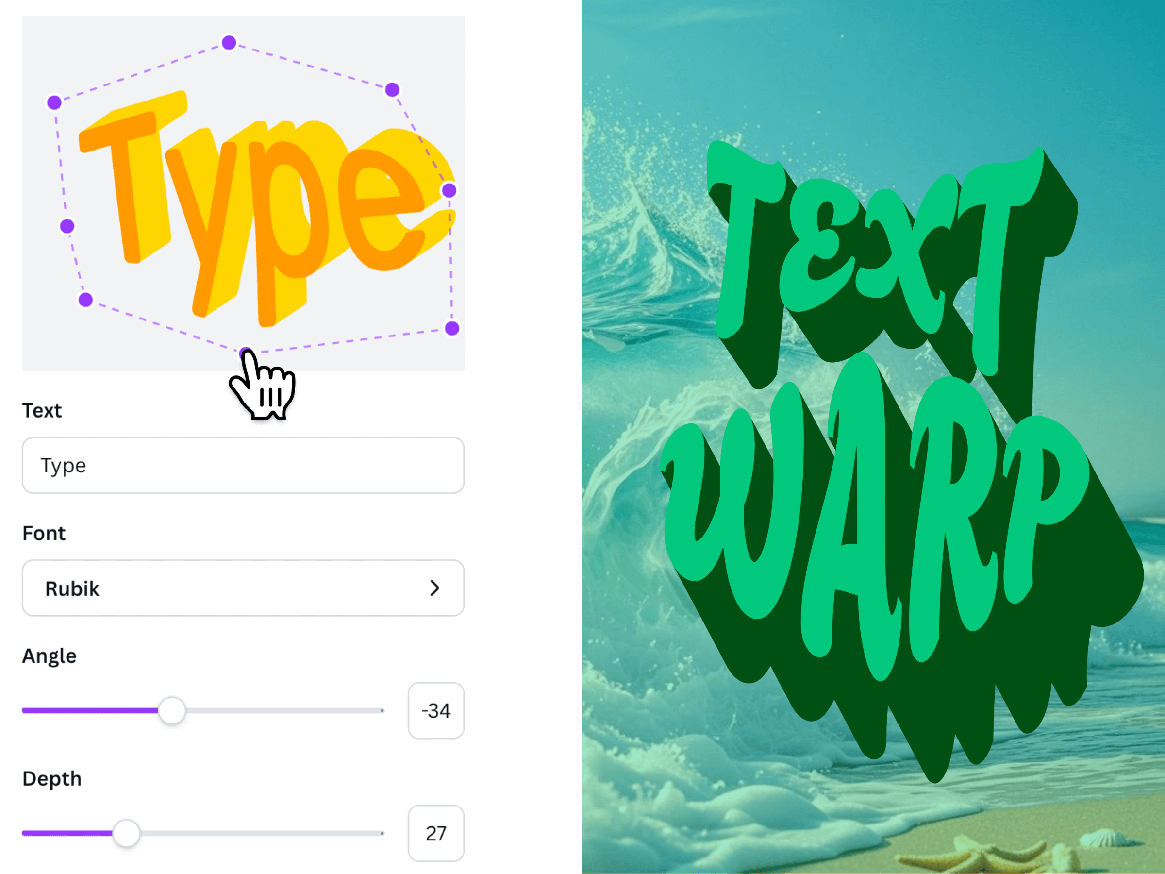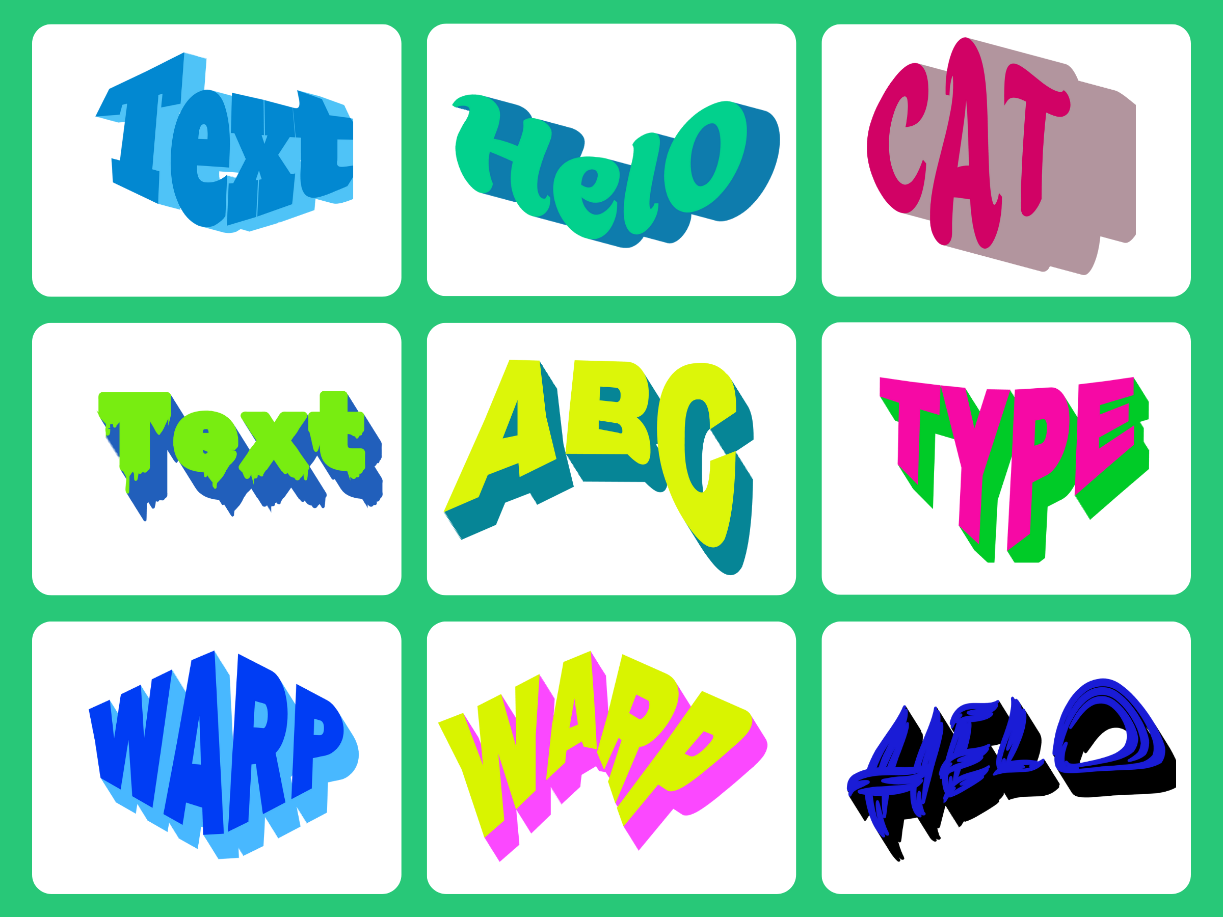 Create eye-catching warped text effects with simple drag controls. Customize shadows, fonts, and colors to make your typography stand out.